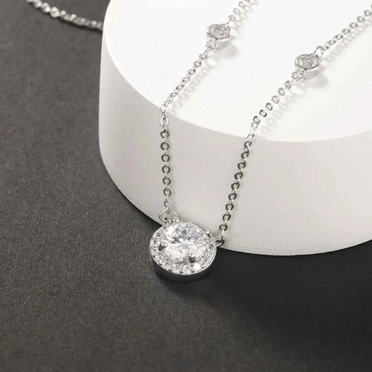 1CT Moissanite Necklace for Women Certified 925 Sterling Silver Sparkling Lab Diamond Pendant Chain Party Jewelry GRA USA Stock