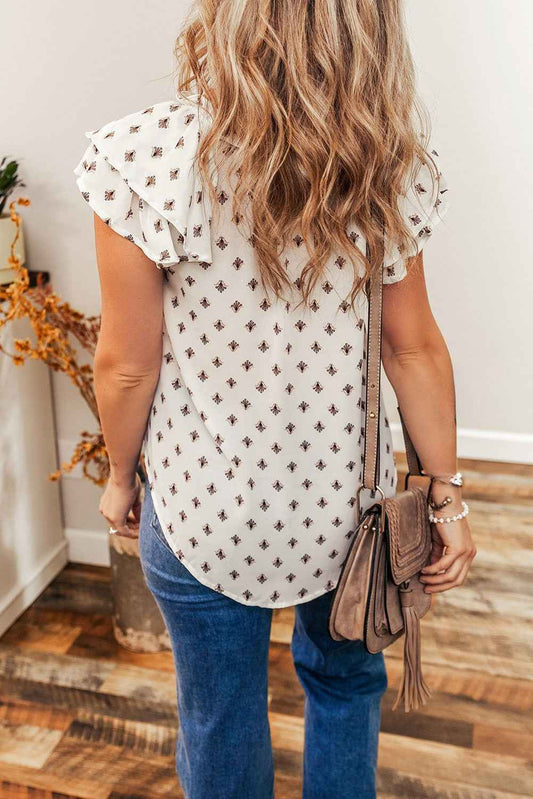 Aria Boho Pattern Ruffled Sleeve V Neck Buttoned Blouse