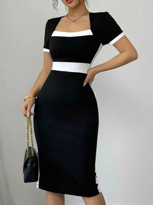 Two-Tone Ribbed Knit Top and Skirt Sweater Dress