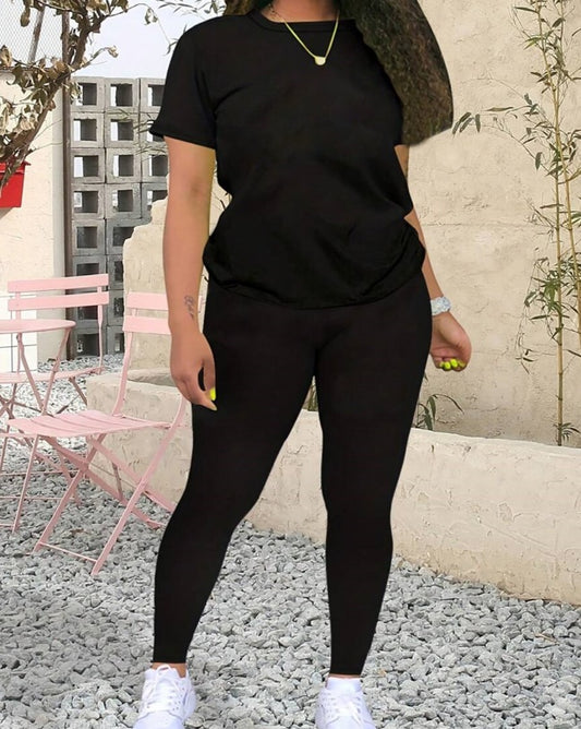 Alphabet Women's T-Shirt Leggings Set - Round Neck Top and Pantsuit Set for Women