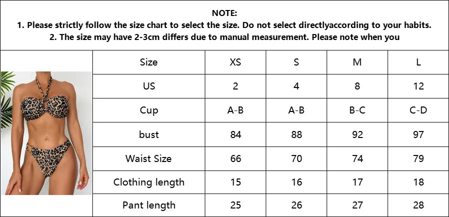 Unleash your fierce side with this leopard print high-waisted bikini set that combines bold animal print with flattering coverage. The eye-catching leopard pattern adds personality while the high-waisted bottoms create a vintage-inspired, curve-hugging silhouette. The hollow-out details add sexy, modern edge while the halter top provides adjustable support. Crafted from quality swimwear fabric with push-up padding, this two-piece set enhances your curves and boosts confidence. Perfect for beach vacations, pool parties, or resort getaways. The backless design adds allure while the high-waisted cut flatters all body types. Available in classic leopard print that never goes out of style. The push-up bra top creates a flattering silhouette while the hollow-out details add visual interest. Pair with sunglasses and a wide-brim hat for beach goddess vibes. Available in sizes XS through L for a comfortable fit. The halter neckline provides secure support while the high waist offers modest coverage. Easy to care for—hand wash and lay flat to dry.