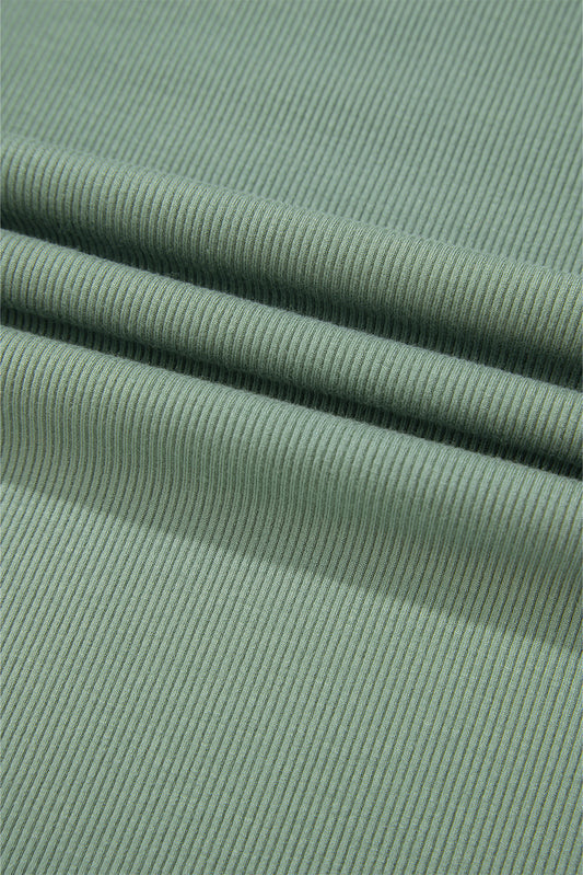 Mint Green Ribbed Colorblock Patchwork Raglan Long Sleeve Women's Top