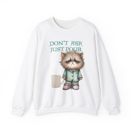Just Pour Coffee Lover Sweatshirt Women's Top - Funny Cat Lover Gift, Cozy Apparel