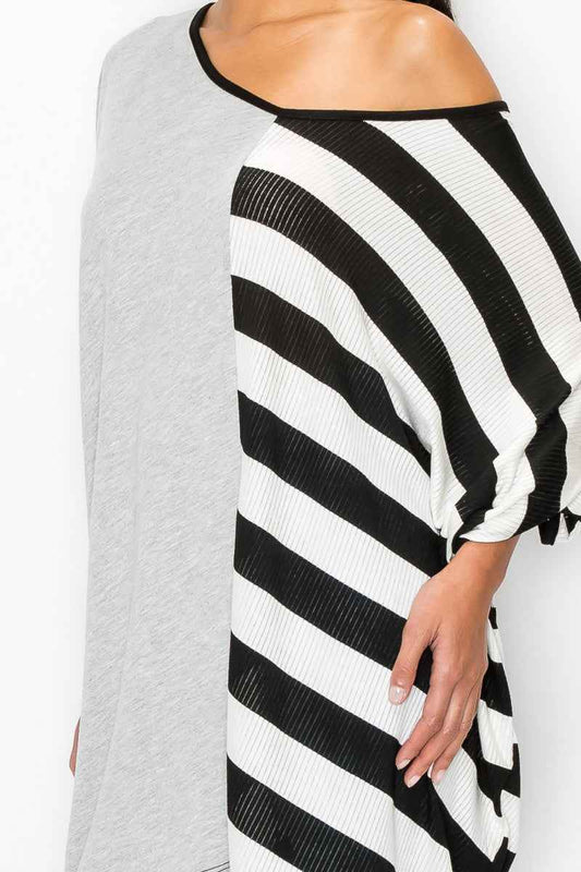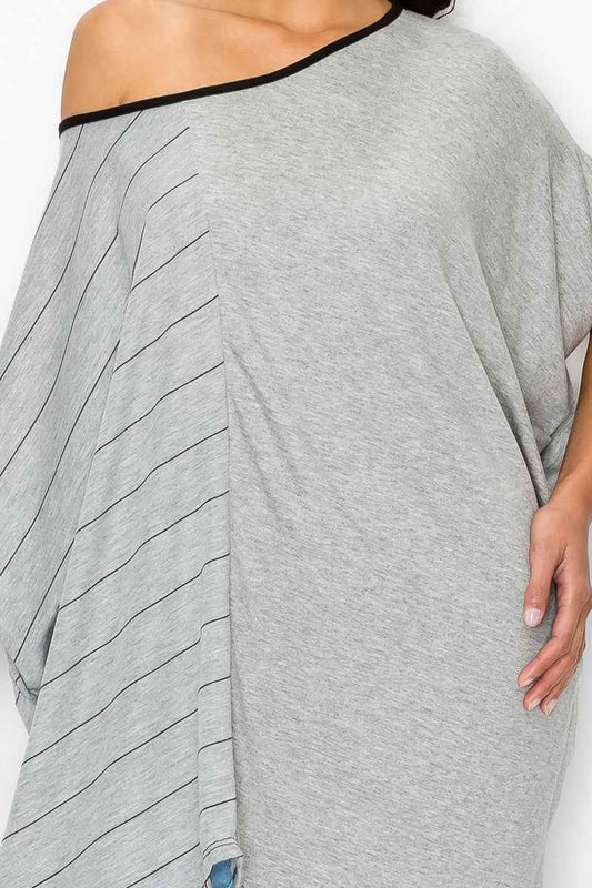 Stripe and Solid Contrast Oversized Women's Top Grey - Trendy and Comfortable