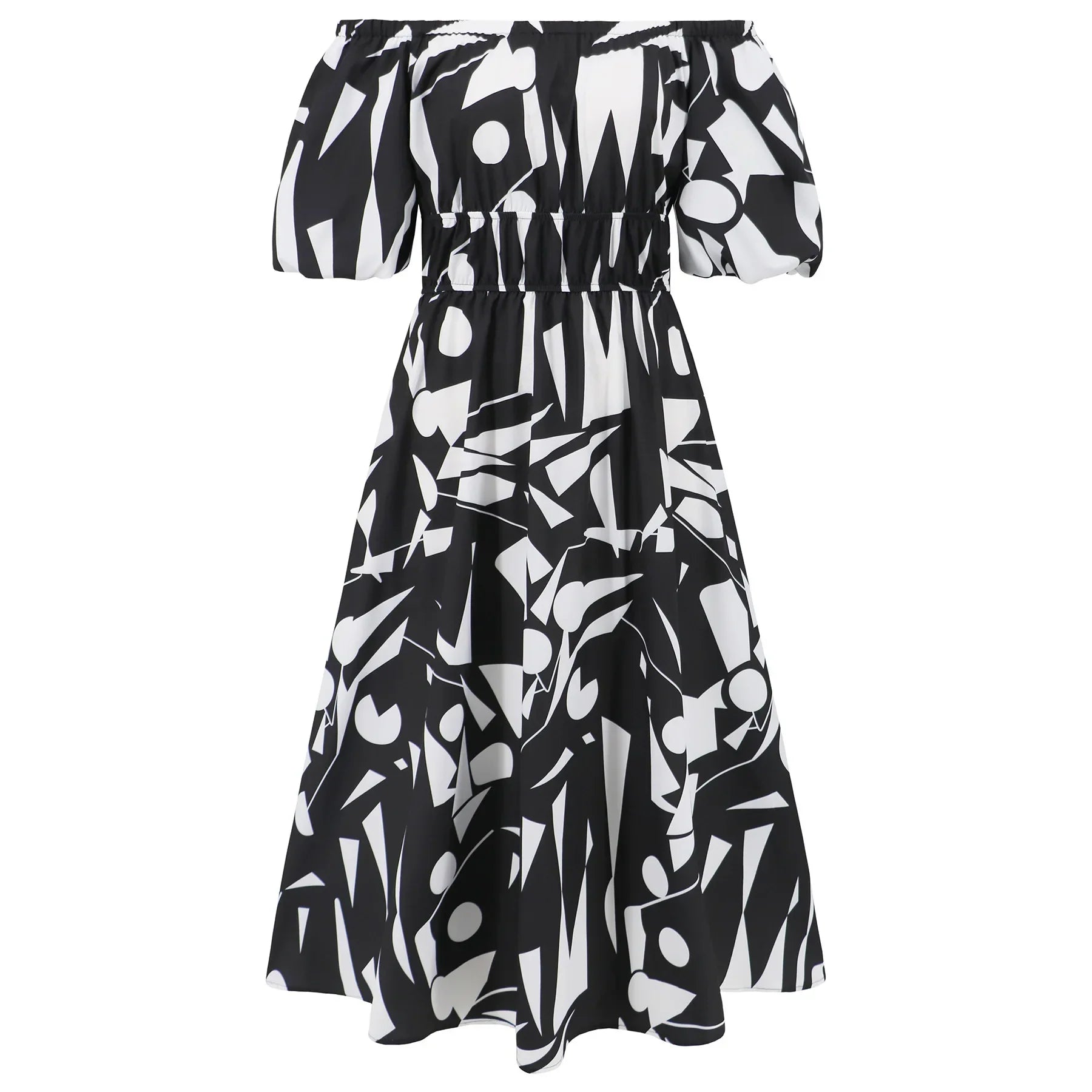 Sexy off Shoulder Bubble Sleeves Printed Maxi Skirt Dress Bohemian Dress